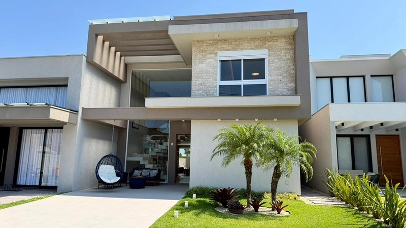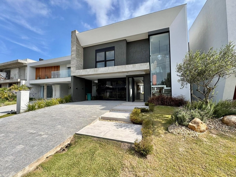 Mobiliada | Pronta para aproveitar Área privativa: 204,50M² Área total: 341,84M² Características do imóvel: Casa térrea fundos área verde Totalmente Mobiliada e decorada Sistema de Alexa Persianas automatizadas 04 suítes independentes Living 03 ambientes com lareira Cozinha americana Espaço gourmet Lavabo Lavanderia Pátio aos fundos e lateral Vaga para 04 carros